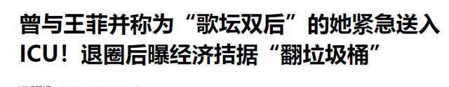 潇湘晨报:曾与王菲并称为“歌坛双后”的她紧急送入ICU!退圈后曝经济拮据“翻垃圾桶”